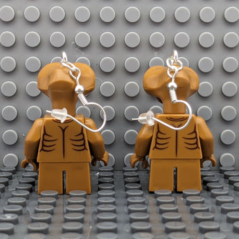 Hand-made with hypoallergenic, non-reactive metal French hooks and molded plastic brick people, brand-name unknown.