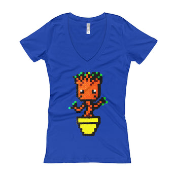 Baby Groot Perler Art Women's V-Neck T-shirt by Aubrey Silva + House Of HaHa Best Cool Funniest Funny Gifts
