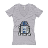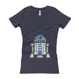 Space Friend Perler Art Fitted V-Neck T-shirt by Aubrey Silva